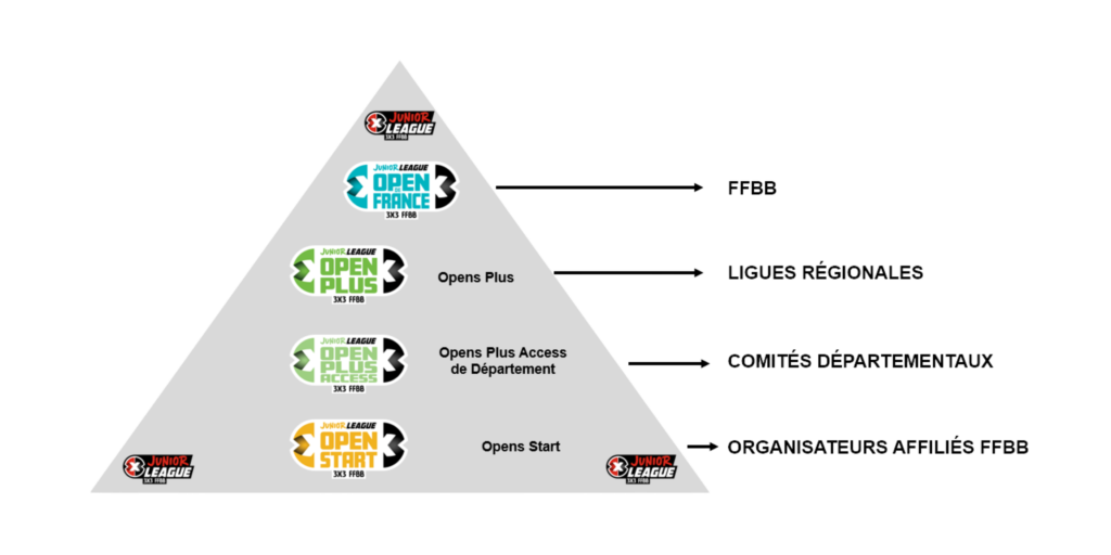 Ce sont des tournois ouverts à tous, pour entrer dans la discipline. Ils sont organisés tout au long de l’année par les clubs du département affiliés à la FFBB, ou des structures scolaires (collèges, lycées, universités..). Le niveau de pratique est hétérogène, de la découverte à la compétition : chacun peut s’inscrire quel que soit son ranking individuel, et cumuler des points, permettant de participer à termes aux Opens Plus et à l’Open de France.